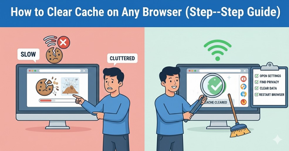 GeneralHow to Clear Cache on Any Browser (Step-by-Step Guide)January 13, 20260 Share this post PREVHow to Fix Slow Internet Connection at Home (Easy Solutions) Related Posts How to Fix Slow Internet Connection at Home (Easy Solutions) How to Fix WordPress White Screen of Death (Beginner Guide) Best Free Online Tools for Students (No Sign-Up Required) Leave a Comment Cancel CommentName * Email * Website Save my name, email, and website in this browser for the next time I comment. Comment